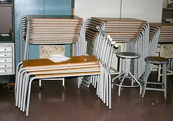 Barnesville Stackable Tables are made of 1″ 16 gauge tubular steel that is welded for strength. The base is powder coated in middle gray, and the top is ½” MDO* board with polyurethane coating, riveted to the steel base. They have self-adjusting rubber feet.